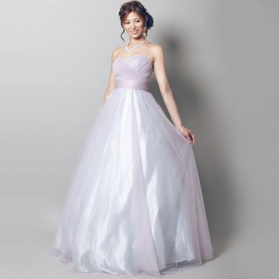 2色使いライラックカラーシンプルチュールボリュームドレス