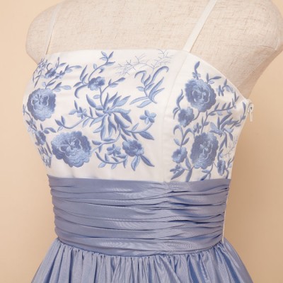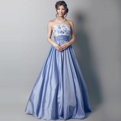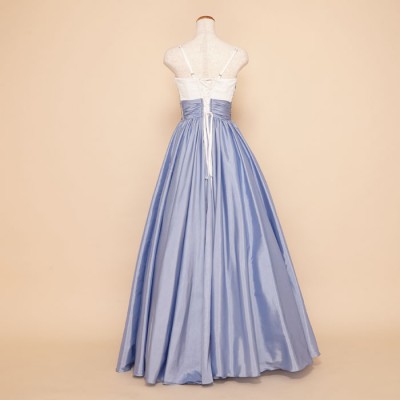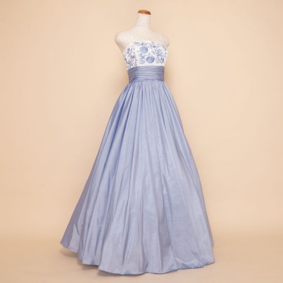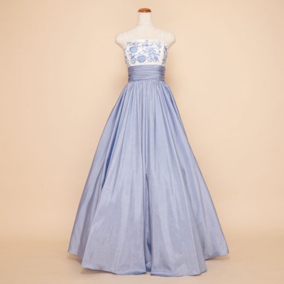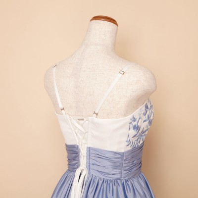 スカイブルー胸元刺繍バイカラーAラインドレス