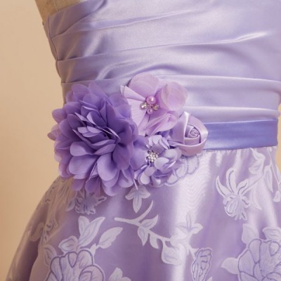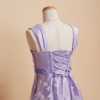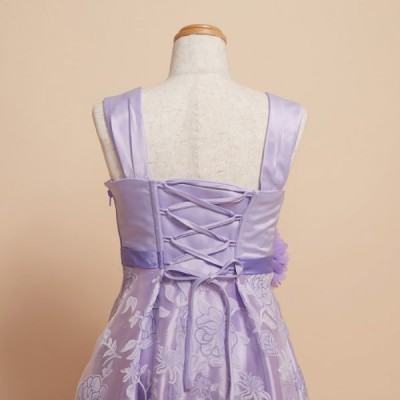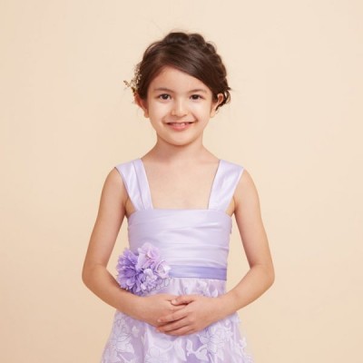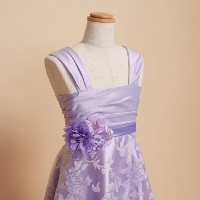 薄いパープルが少しお姉さんな雰囲気の花柄キッズドレス。パニエを入れてふんわり着るのもおすすめです。発表会や記念写真撮影用に。