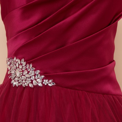 シルク調厚手サテンフーシャチュールプリンセスラインドレス