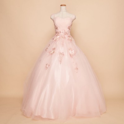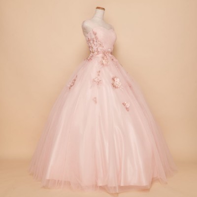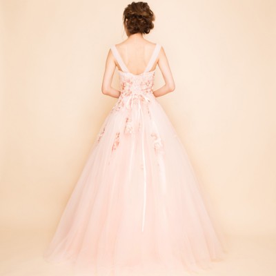 ピンクカラーフラワー刺繍プリンセスチュールドレス