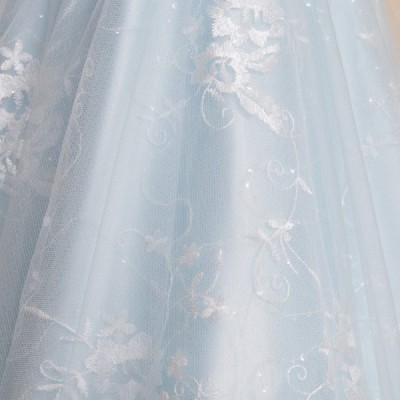 繊細なレース生地を贅沢に使用したキッズロングドレスです。可愛らしくも上品なふんわりチュールスカートとキラキラのスパンコールはまるでお姫様のよう。パニエを入れてとびっきり可愛く着こなすのがおすすめです。発表会や記念写真撮影等に。