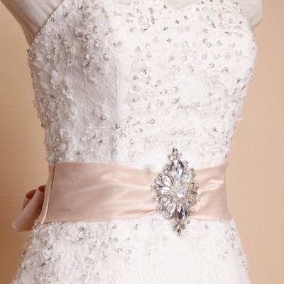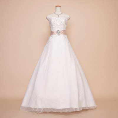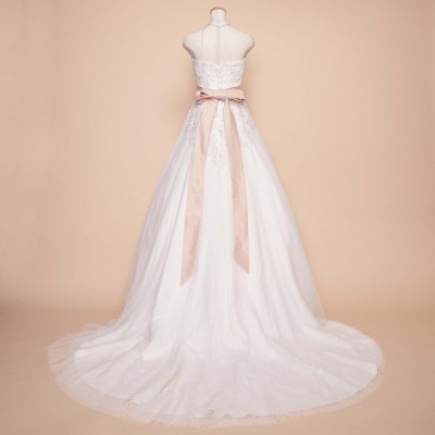 ウエストリボンがキュートなロングトレーンウエディングドレスです。