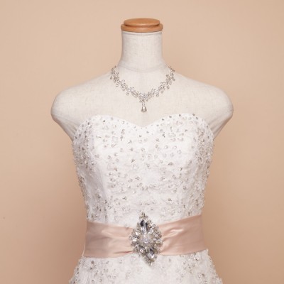 店舗にてこちらの商品をご試着いただけますが、ウエディングドレスのご試着時は試着料を頂戴いたしますので予めご了承ください。