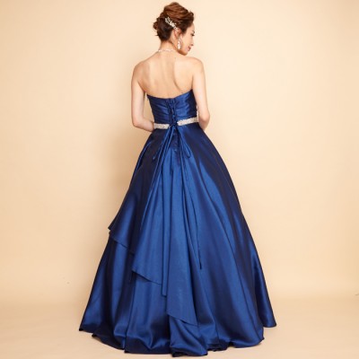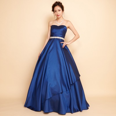 ロイヤルブルーシャンタンアシンメトリースカートドレス