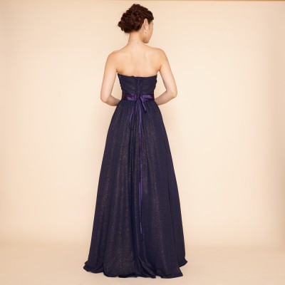 ゴールドグリッターを散りばめたシフォン生地をドレス全体に使用したすっきりとしたラインのロングドレスです