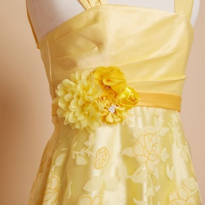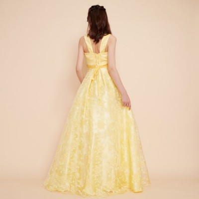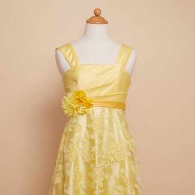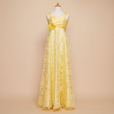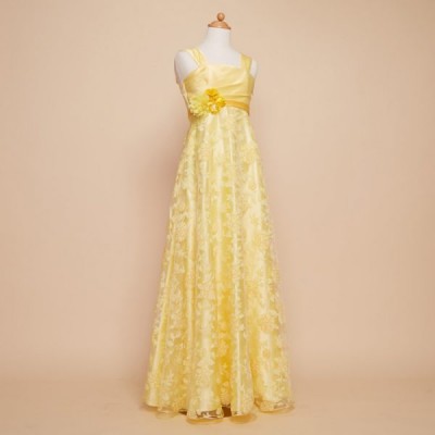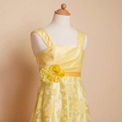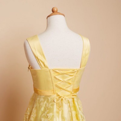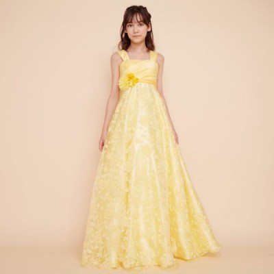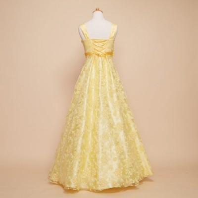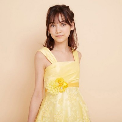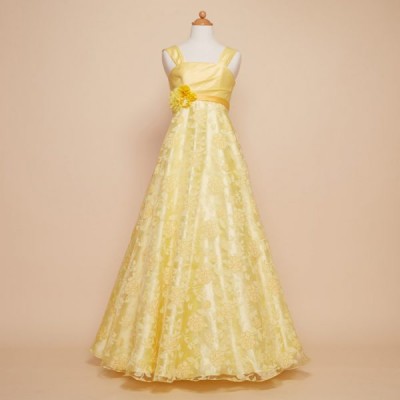 少し大人なデザインのキュートイエロージュニアドレス。パニエを入れてふんわりスカートドレスにしても、そのままでちょっとお姉さんぽくしてみてもとっても可愛いです。発表会や記念写真撮影用に。