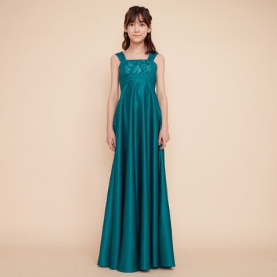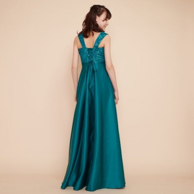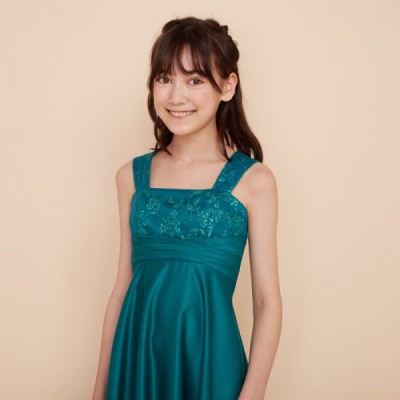高級感あるマットなサテン生地を使用した、スレンダーラインドレス。お姉さんぽく上品な着こなしが出来ます。ステージ映え抜群の鮮やかなエメラルドグリーンカラー。コンクールやオーディションなどに。