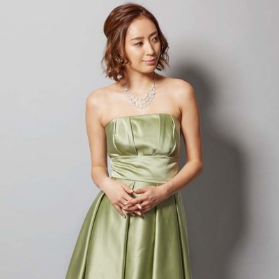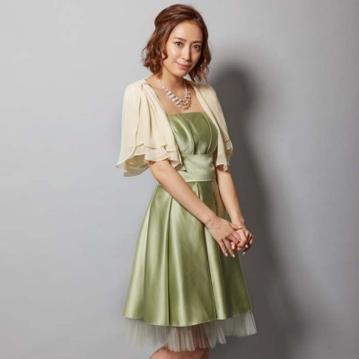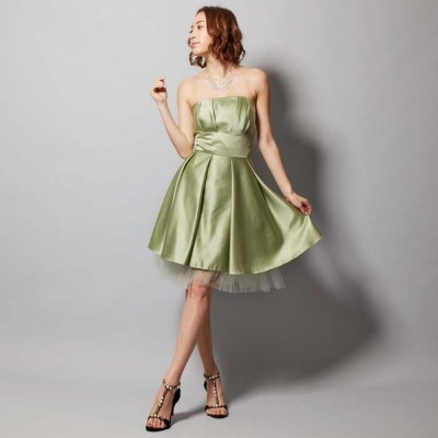 【OUTLET】厚手サテンライトグリーンショートドレス