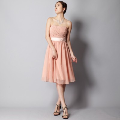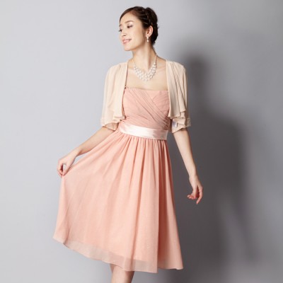 ピンクゴールドグリッターシフォンミディアム丈ドレス