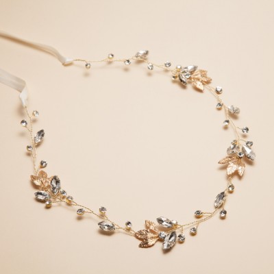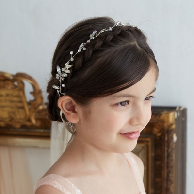 ストーンとリーフを編んだカチューシャタイプのヘッドドレスです。
