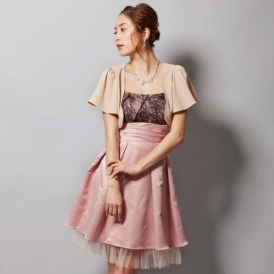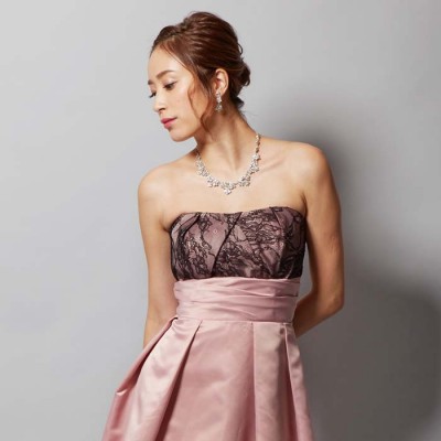 【OUTLET】ダスティーローズレースサテンミディアムドレス