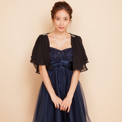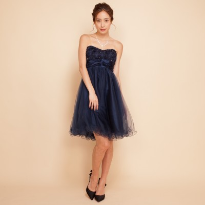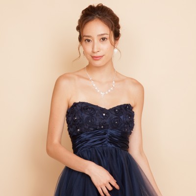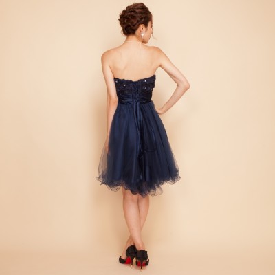 【OUTLET】ローズシフォンネイビーチュールミディアムドレス