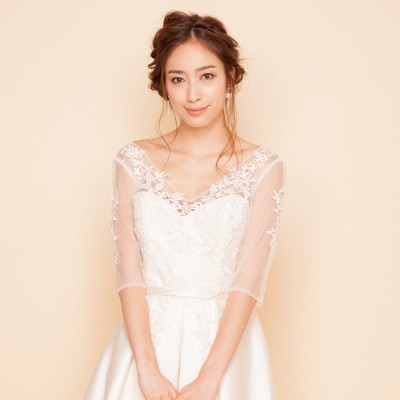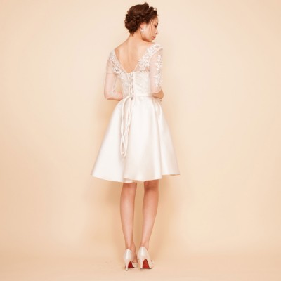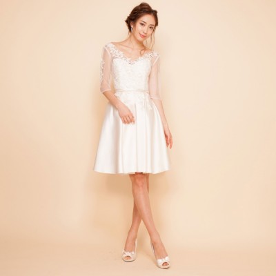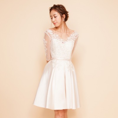 【OUTLET】レース袖アイボリーミディアム丈ドレス