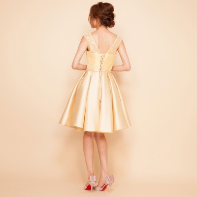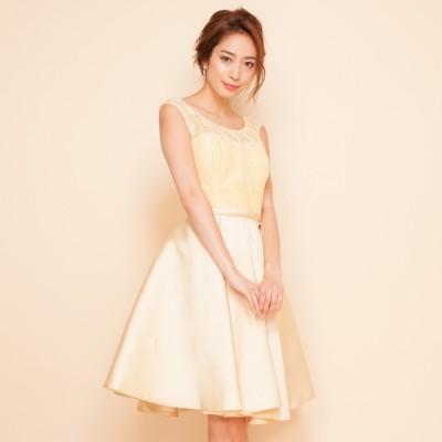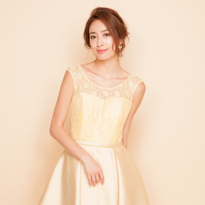 【OUTLET】フラワーレースツイルサテンイエローミディアムドレス