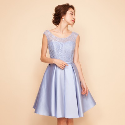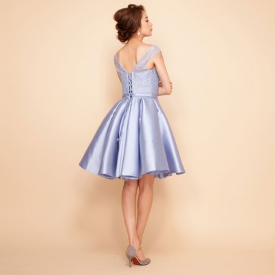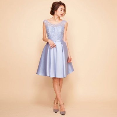 【OUTLET】フラワーレースツイルサテンライトブルーミディアムドレス