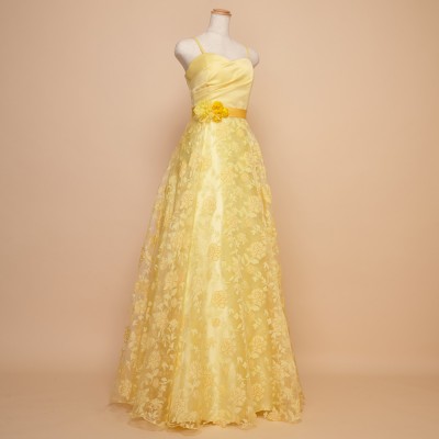イエローフラワーオーガンジーロングドレス