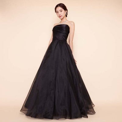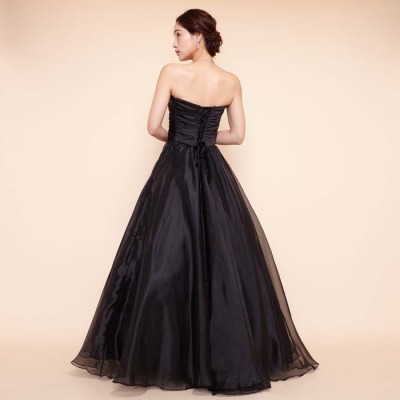 ブラックカラーのドレスでもこちらのドレスは中に着用するパニエの種類次第でボリューム感の調節が可能なので、大きく目立ちたいときはボリュームパニエや3本ワイヤーパニエを着用して、ちょっと控えめにという時にはパニエを着用しないなどでドレスの表情と変えられますよ!