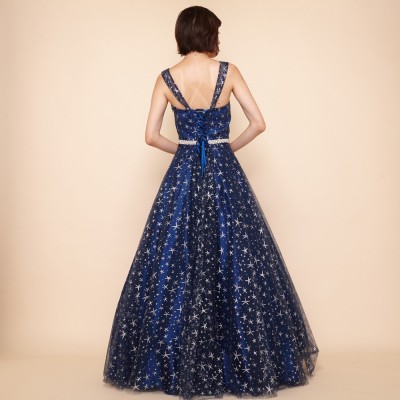 【OUTLET】ネイビーシルバーグリッタースターチュールドレス