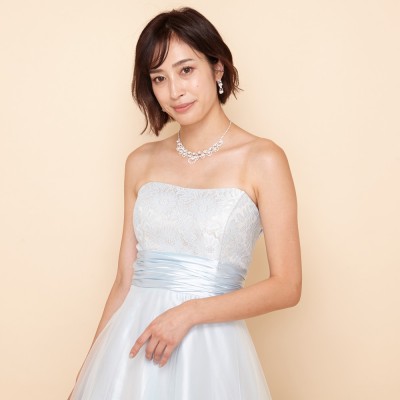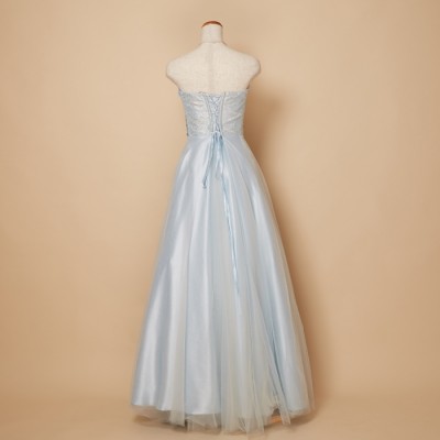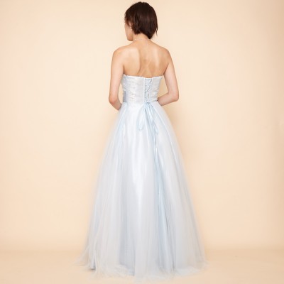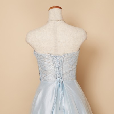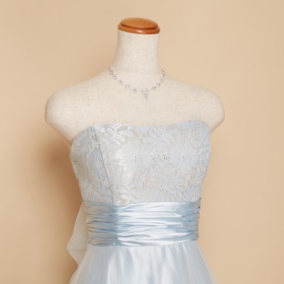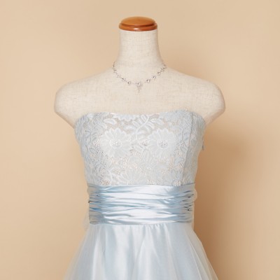 淡いパステルカラーが涼し気なベビーブルーカラーのドレス。