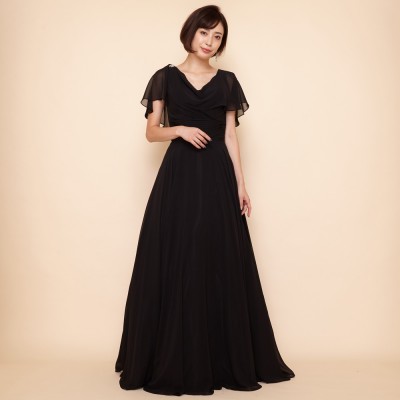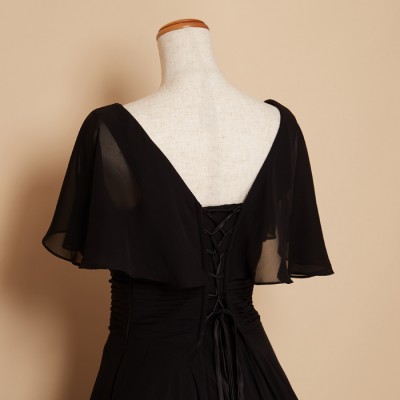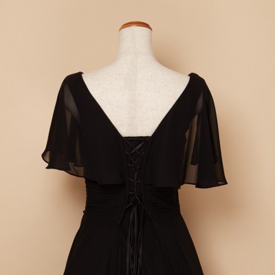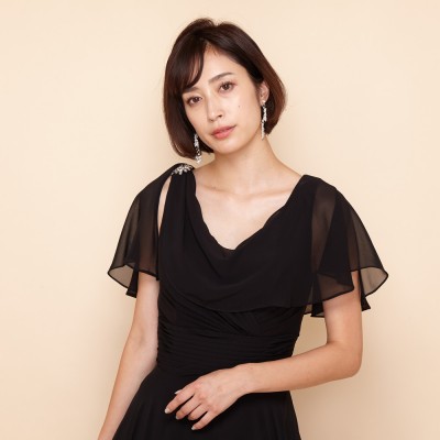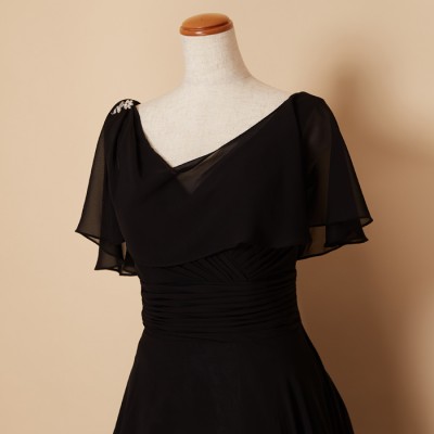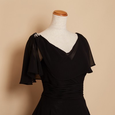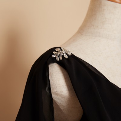 クリアストーン付き肩カバーリングシフォンブラックドレス