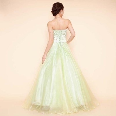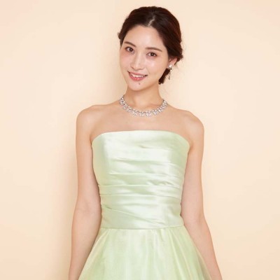 中に着用するパニエの種類次第でスカート部分のボリュームも調整して頂くが可能です。とっても涼しげで爽やかなミントカラーのドレスは当店でも常に人気カラーの一つです。結婚式の二次会ドレス、演奏会、パーティーなどにもぴったりですよ!
