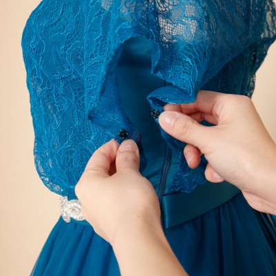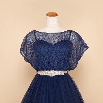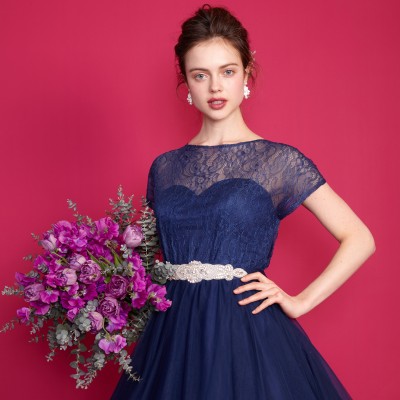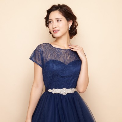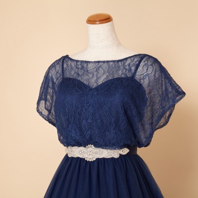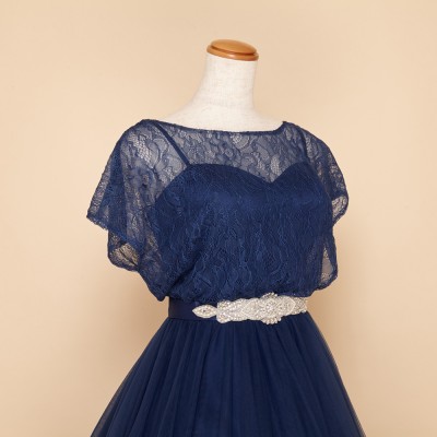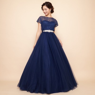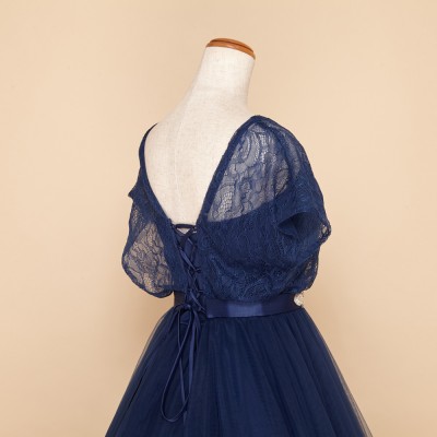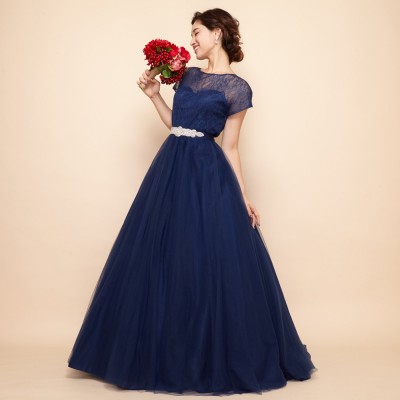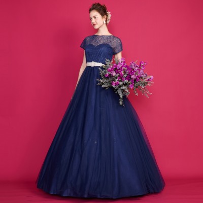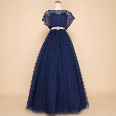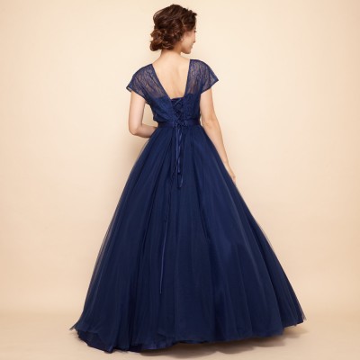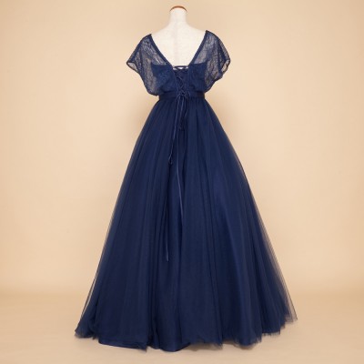 【OUTLET】ネイビーレーストップボリュームロングドレス