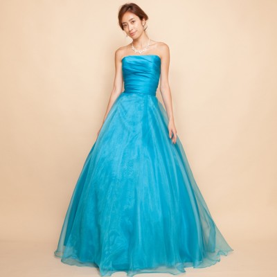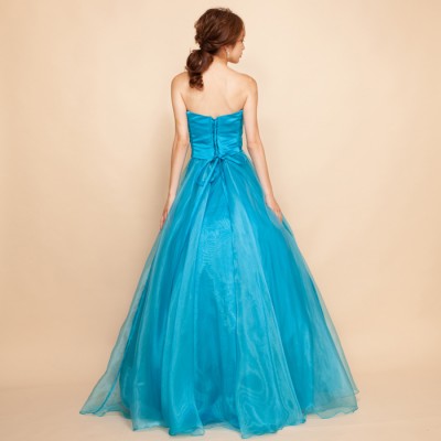 中に着用するパニエの種類次第でスカート部分のボリュームも調整して頂くが可能です。ターコイズブルードレスはとっても涼しげで爽やかな印象を与えてくれます。