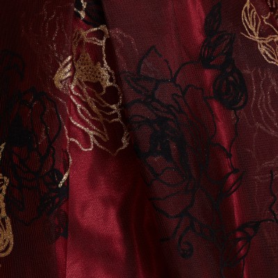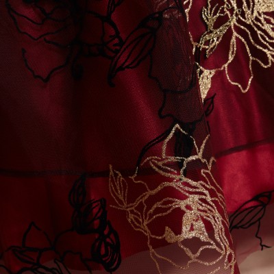 ゴールドブラックワインフロッキーチュール刺繍ドレス