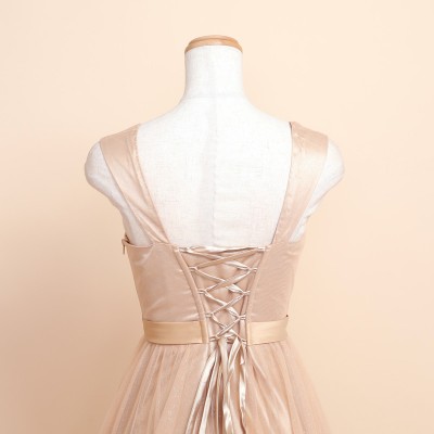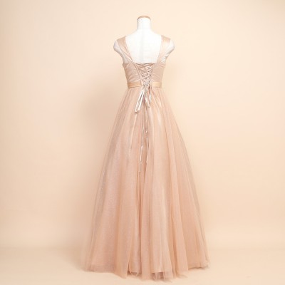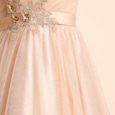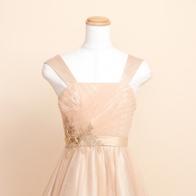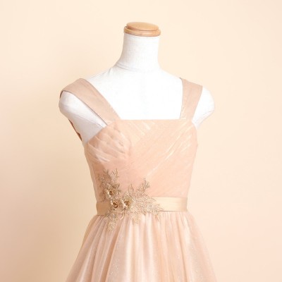 片側のチュールにはグリッターが吹き付け加工されているので、ライトの下ではキラキラと光りステージをより華やかにしてくれます。ピアノなどの発表会用ドレスとしても、記念日のドレスにもおすすめ。