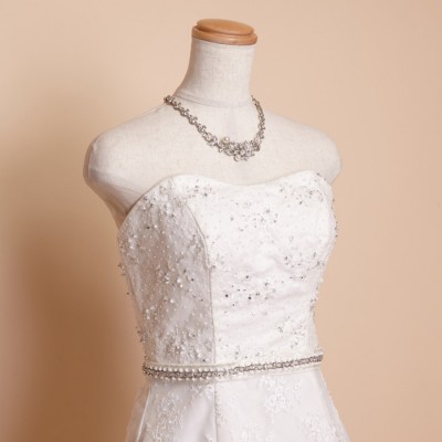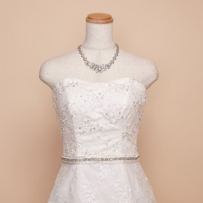 店舗にてこちらの商品をご試着いただけますが、ウエディングドレスのご試着時は試着料を頂戴いたしますので予めご了承ください。