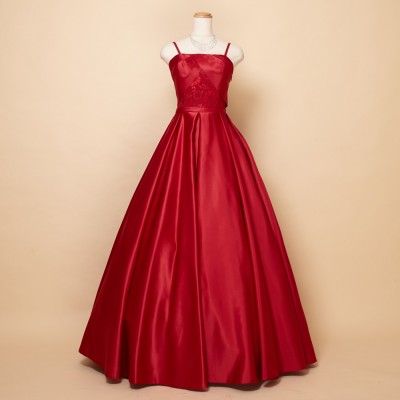 上品でシンプルなデザインに上質な厚地サテンを贅沢に使用した正統派クラシカルドレス。演奏会の衣装としてはもちろん、音楽コンクール用衣装にもおすすめです。高級感あるマットな光沢と胸元と背中にあしらわれたエレガントなフラワーレースがアクセント。印象的なレッドカラーはパニエを使って華やかに着こなしてみてはいかがでしょうか。