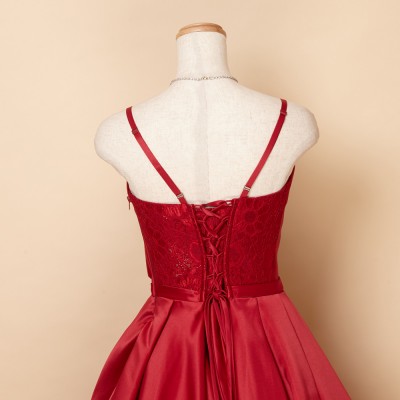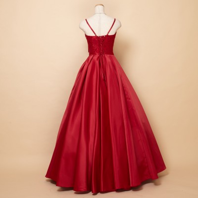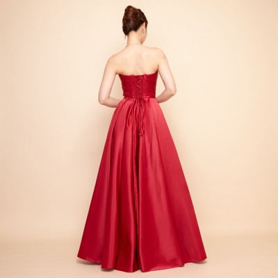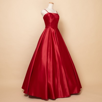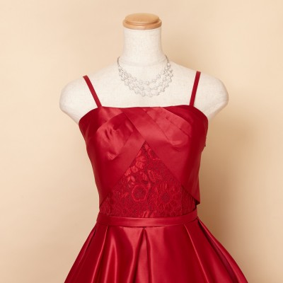 レッドサテンタックスカートクラシカルドレス