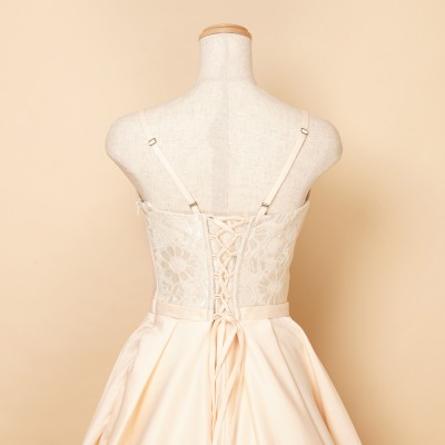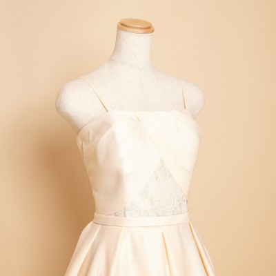 【OUTLET】シャンパンサテンタックスカートクラシカルドレス