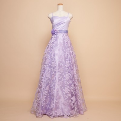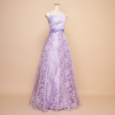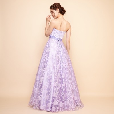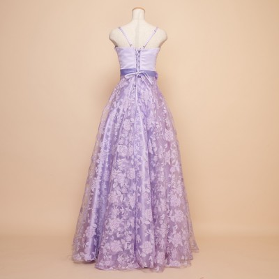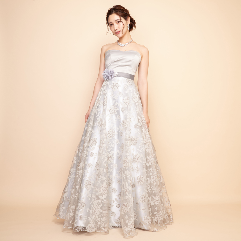 シンプルな上見頃と対照的なスカートのフラワープリントオーガンジーがとても可愛らしいステージドレス。