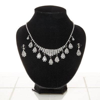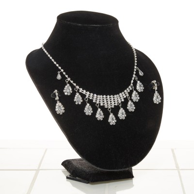 大粒のティアドロップが煌めくドレッシーなデザインのネックレスイヤリングセット。華やかな装いにぴったりの存在感あるアクセサリーです。