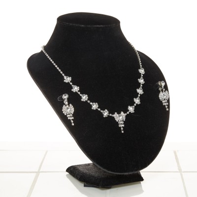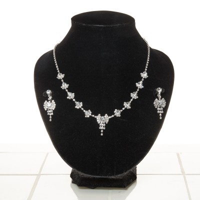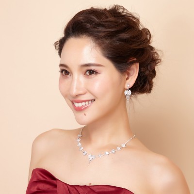 リボンモチーフクリアストーンネックレスイヤリングセット