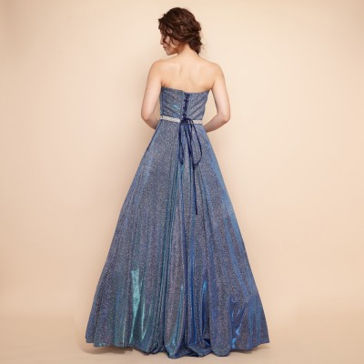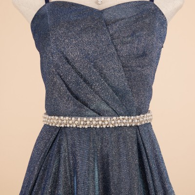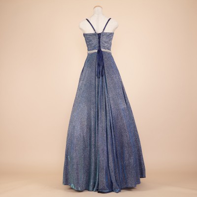 メタリックなブルーの光沢と煌めくグリッター、ANNABELLEドレスの中でも断トツの輝きを放つ主役のための演奏会ドレス。写真では伝えきれないとびっきり華やかな輝きをぜひお手に取ってお確かめください!