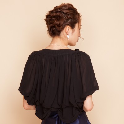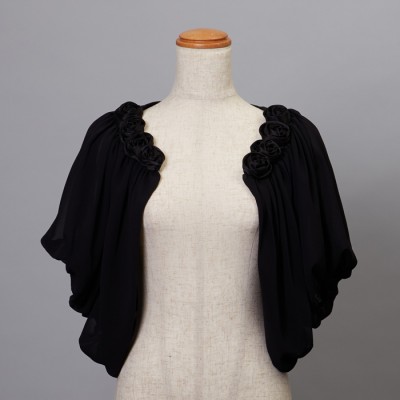 胸元に施されたローズモチーフがかわいいシフォボレロです!カバーリングとしてパーティー、結婚式、謝恩会や特別な日の食事会などにも大活躍します