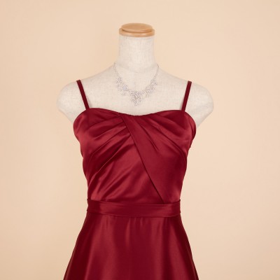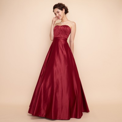 フォーマルな場にふさわしいエレガントなロングドレス。シルクのように滑らかな厚地サテンを使用し、シンプルデザインながらも高級感のある仕立てに。スカートの広がりも抑え目なので伴奏用ドレスやオーケストラ用カラードレス、パーティドレスとしてなど幅広いシーンでぜひご活用ください。どの年代の方にも着やすい深いワインカラーはオールシーズン活用できる定番カラーの演奏会ドレスです。