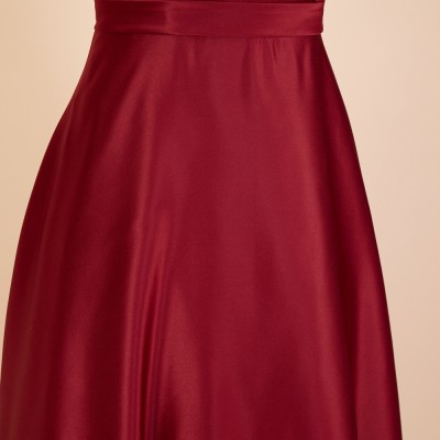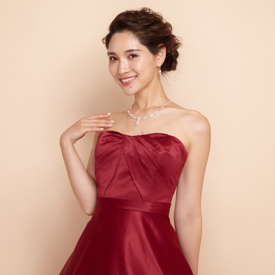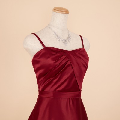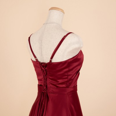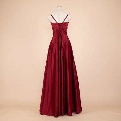 シンプルラインワインカラーフォーマルドレス