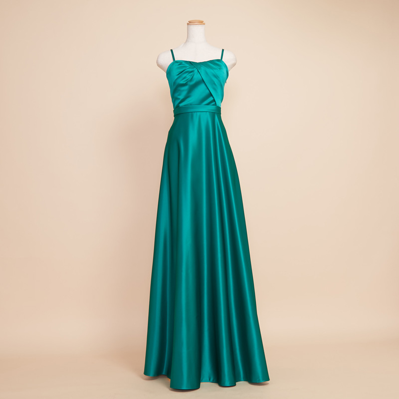 フォーマルな場にふさわしいエレガントなロングドレス。シルクのように滑らかな厚地サテンを使用し、シンプルデザインながらも高級感のある仕立てに。スカートの広がりも抑え目なので伴奏用ドレスやオーケストラ用カラードレス、パーティドレスとしてなど幅広いシーンでぜひご活用ください。