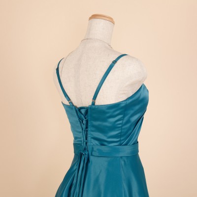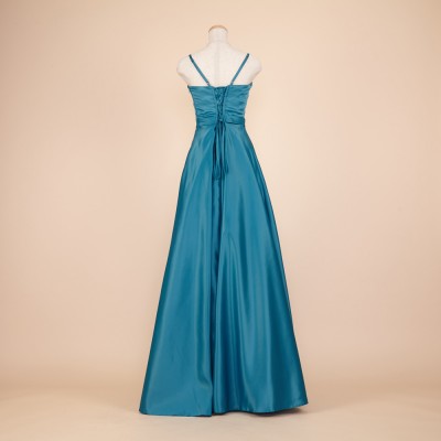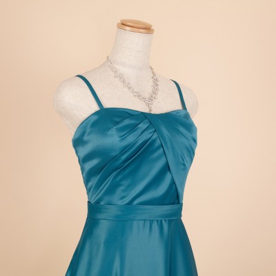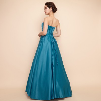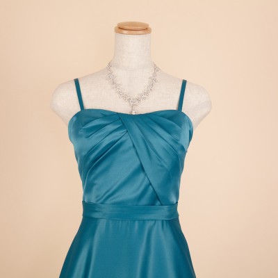 宝石のような艶が美しいブルーグリーンカラーは、ステージ映えやお写真映えの良い鮮やかなステージドレスです。