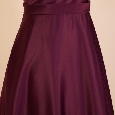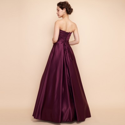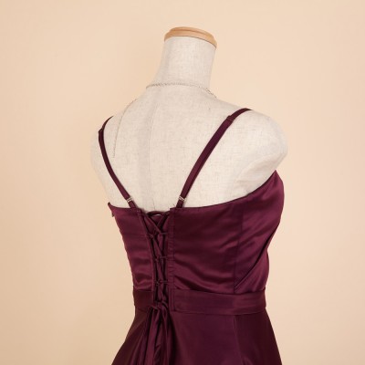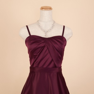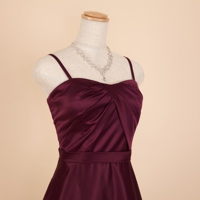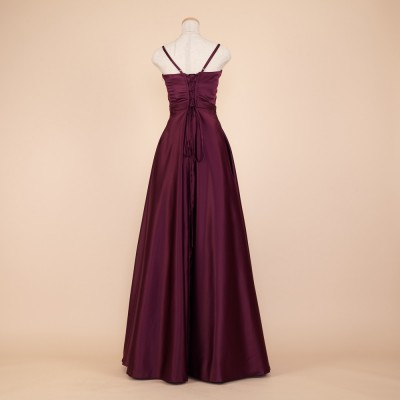 フォーマルな場にふさわしいエレガントなロングドレス。シルクのように滑らかな厚地サテンを使用し、シンプルデザインながらも高級感のある仕立てに。スカートの広がりも抑え目なので伴奏用ドレスやオーケストラ用カラードレス、パーティドレスとしてなど幅広いシーンでぜひご活用ください。カラーバリエーションが豊富なので、複数人での演奏会でお色違いで揃えるのもおすすめです。高貴なプラムカラーは演奏会ドレスとしてはもちろん、パーティードレスとしても人気の高いカラーです。