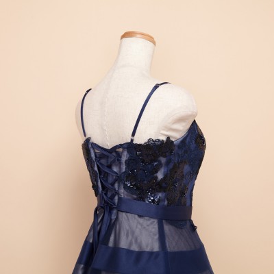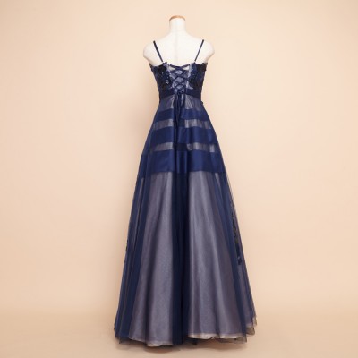 【OUTLET】ボーダーデザインスパンコール刺繍ネイビードレス