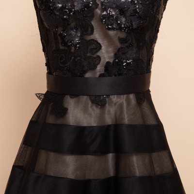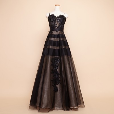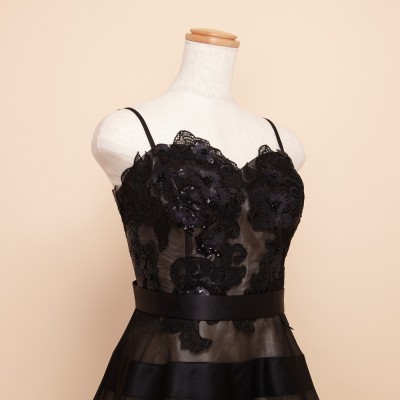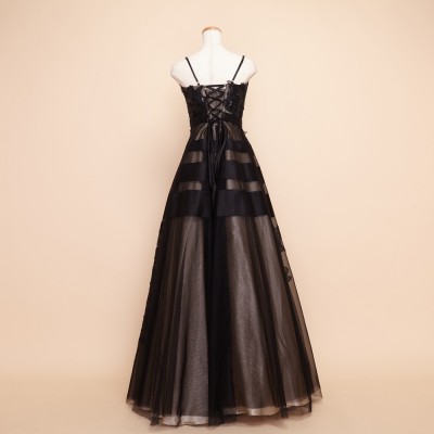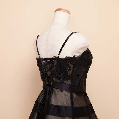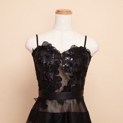 【OUTLET】ボーダーデザインスパンコール刺繡ブラックドレス