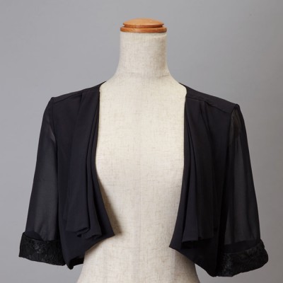 七分袖袖レースシフォンブラックエレガントボレロ