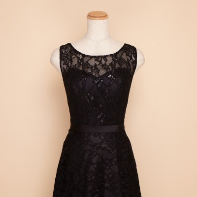 美しく体にフィットする、上品な総レース仕立てのステージドレス。レースには繊細に光るラメ糸が折り込んでいる箇所があるので程よい光沢感が楽しめます。パーティドレスやオーケストラ用ドレスなどに使いやすい、シンプルなデザインです。