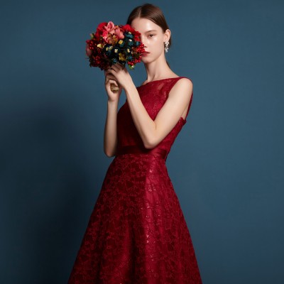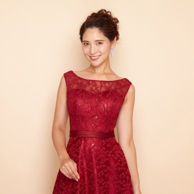 派手さを抑えた品のあるワインレッドカラーは華やかなクルーズパーティにも。