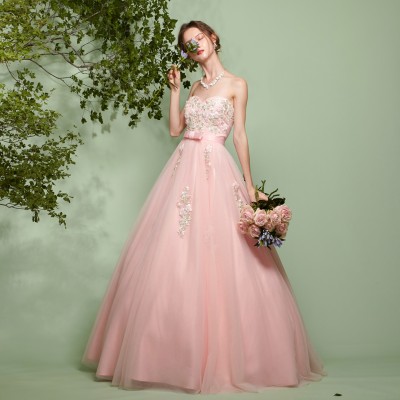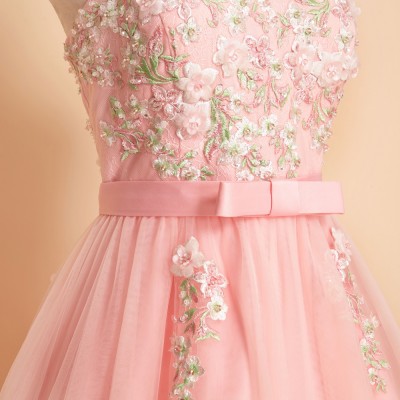 ベビーピンク立体フラワー装飾ボリュームチュールドレス